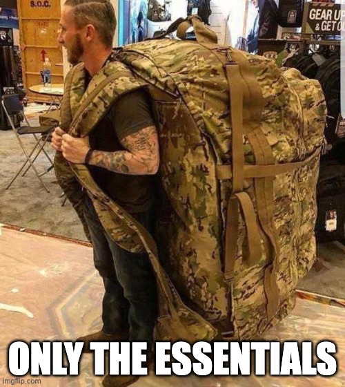 For a simpler definition, it’s just providing an object with everything it needs to do its job. Think of it like packing for a week-long outdoor trip. Everything you take with you must last the entire trip since there won’t be any grocery stores around. This analogy works on another level too: you need to be selective about what you pack. Take too much, and you’ll quickly get worn out.